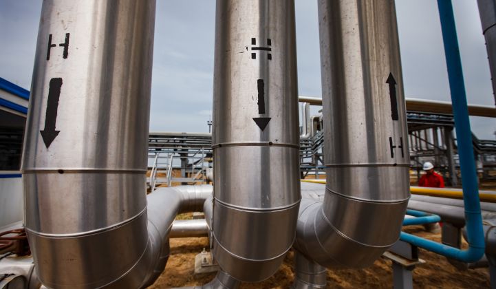 Heat generated in a centralized location for commercial heating requirements such as space heating and water heating, throughout the entire space.